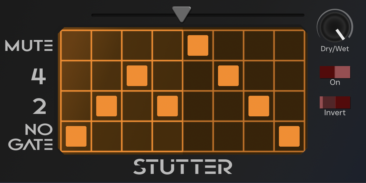 Stutter is a super simple trance gate that I made as my learning project for learning how to make plugins. It lets you step-sequence the speed of the gate between two options. You can also change the polarity of the gate in case that's a thing you want to do.
